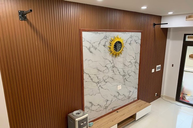Hình ảnh tấm nhựa ốp tường vân gỗ Đài Loan đã được thi công